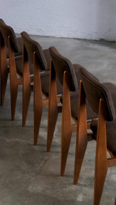 Cette suite de chaises CA en est un exemple remarquable : un ensemble cohérent, restauré avec soin, qui conserve toute la modernité et la force du dessin original de Gascoin. À la fois fonctionnelles, confortables et intemporelles, ces chaises trouveront leur place aussi bien dans un intérieur contemporain que dans une collection dédiée au design du XXᵉ siècle.