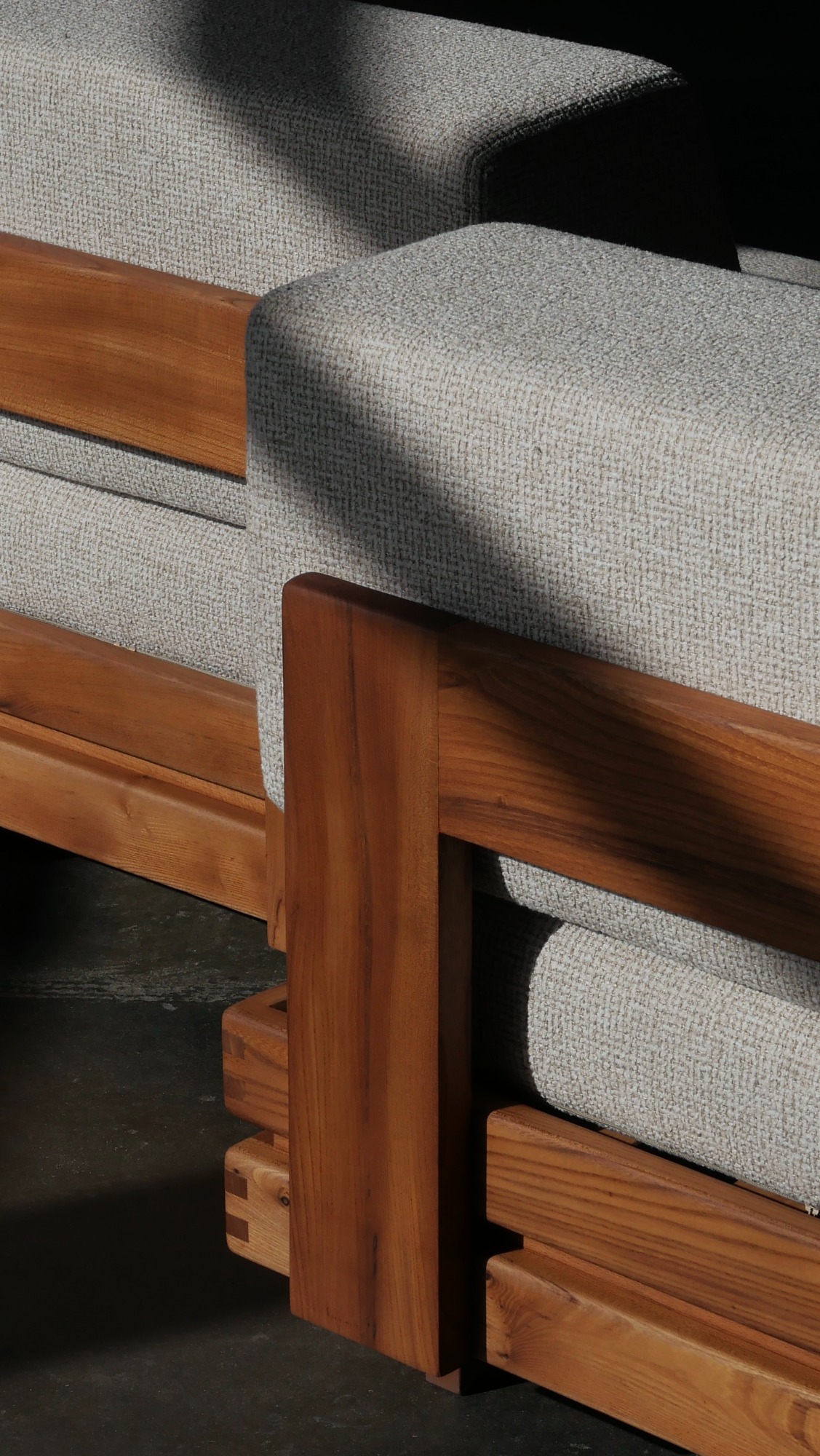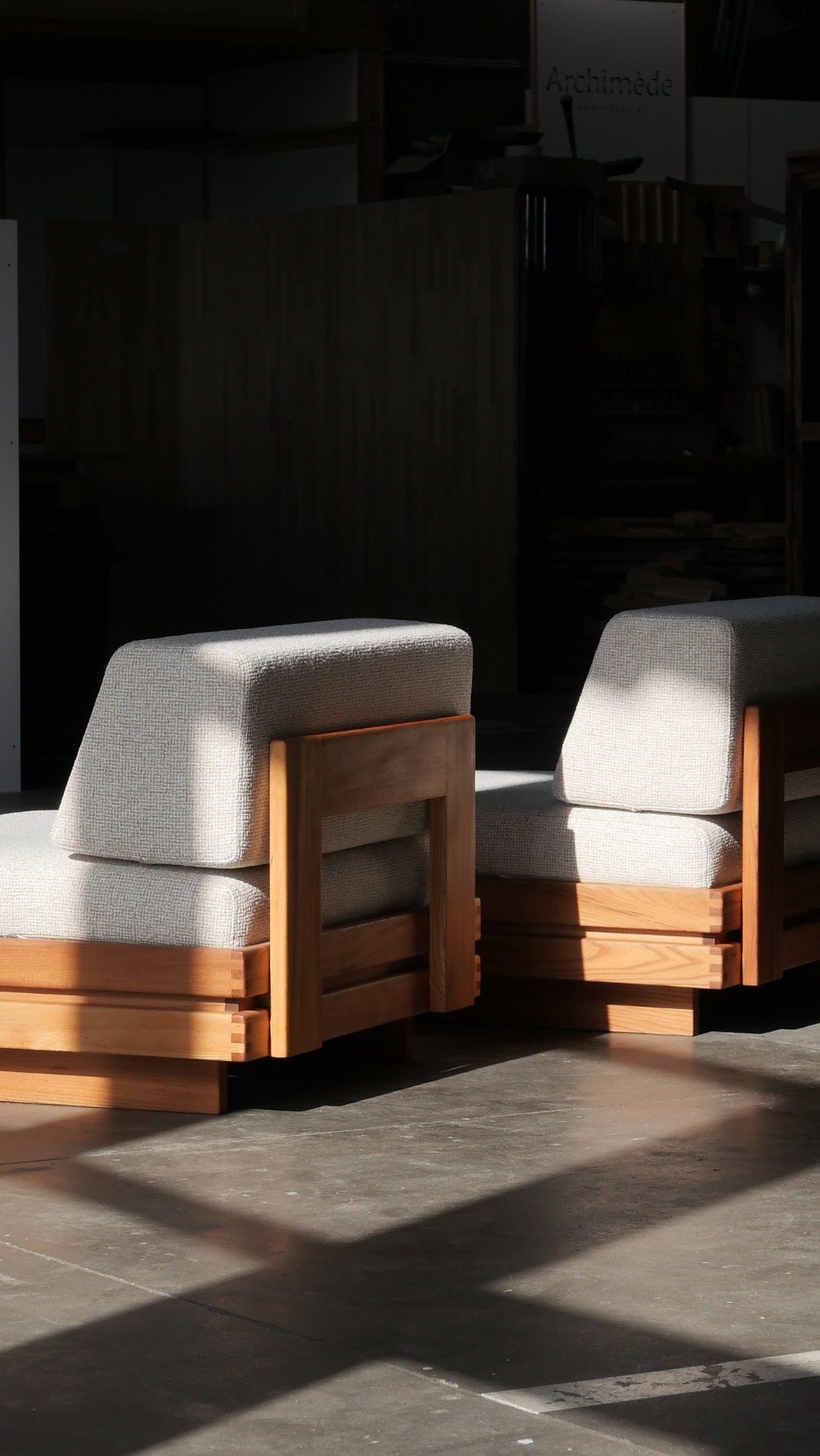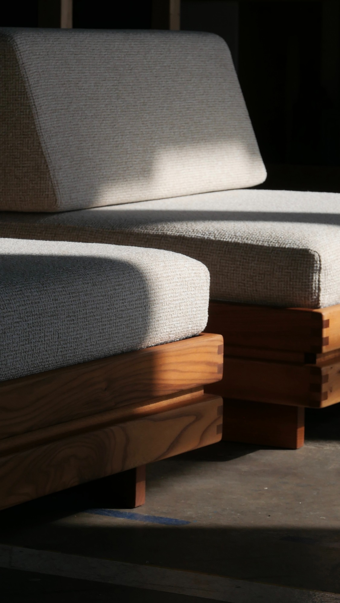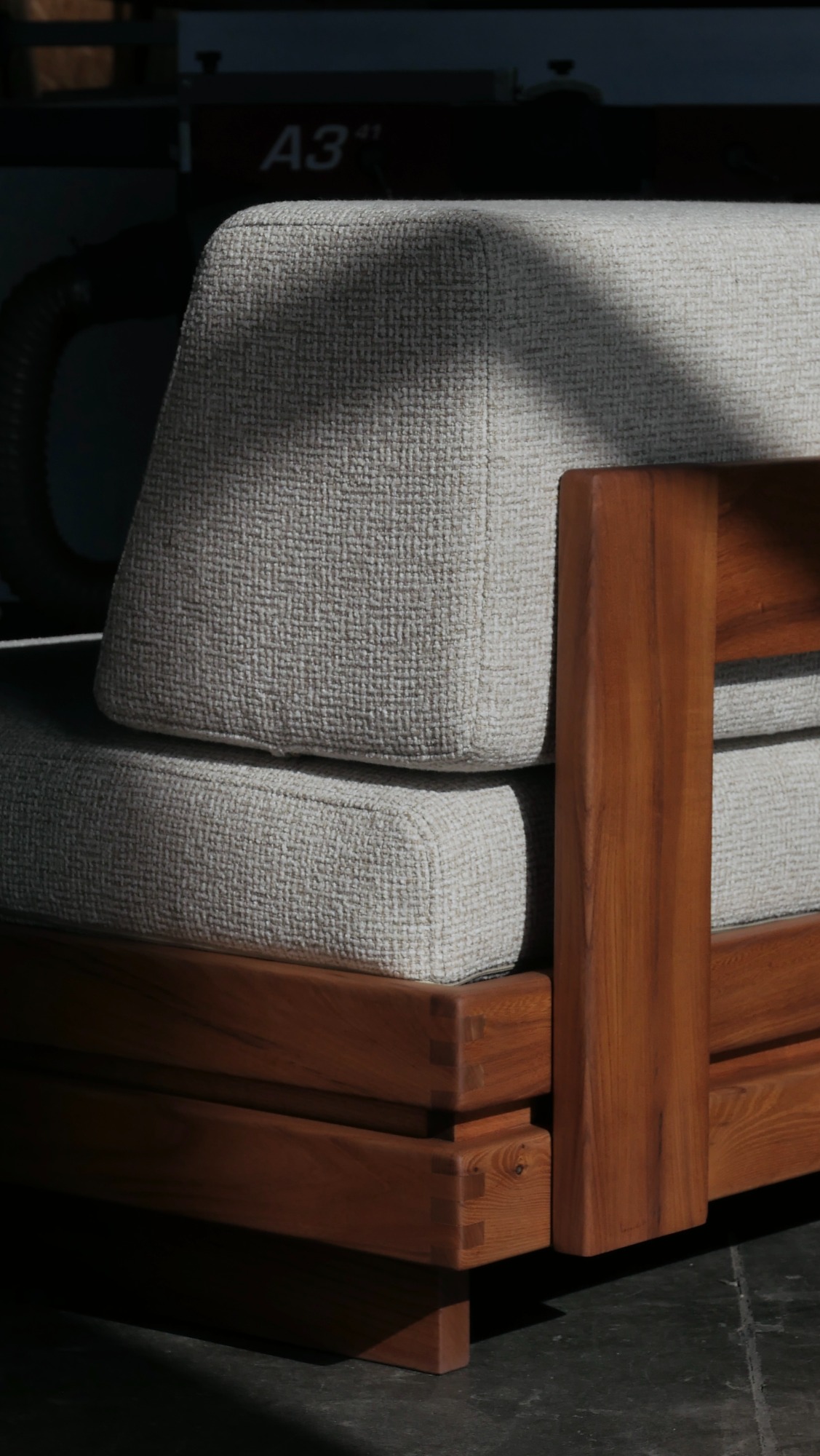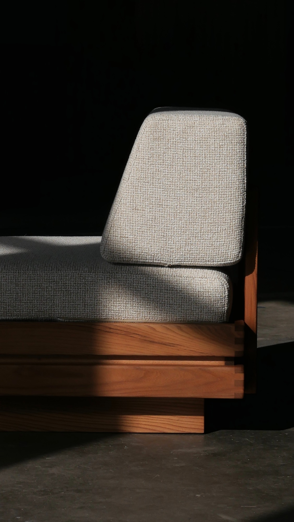 Une ligne basse et structurée, aux proportions justes, évoquant une influence japonisante et une sensation d’assise presque suspendue.
