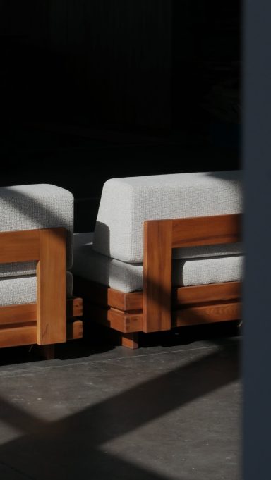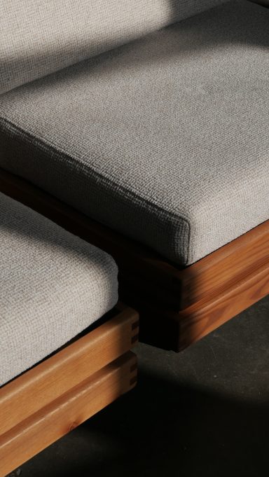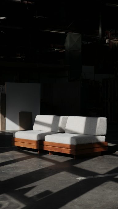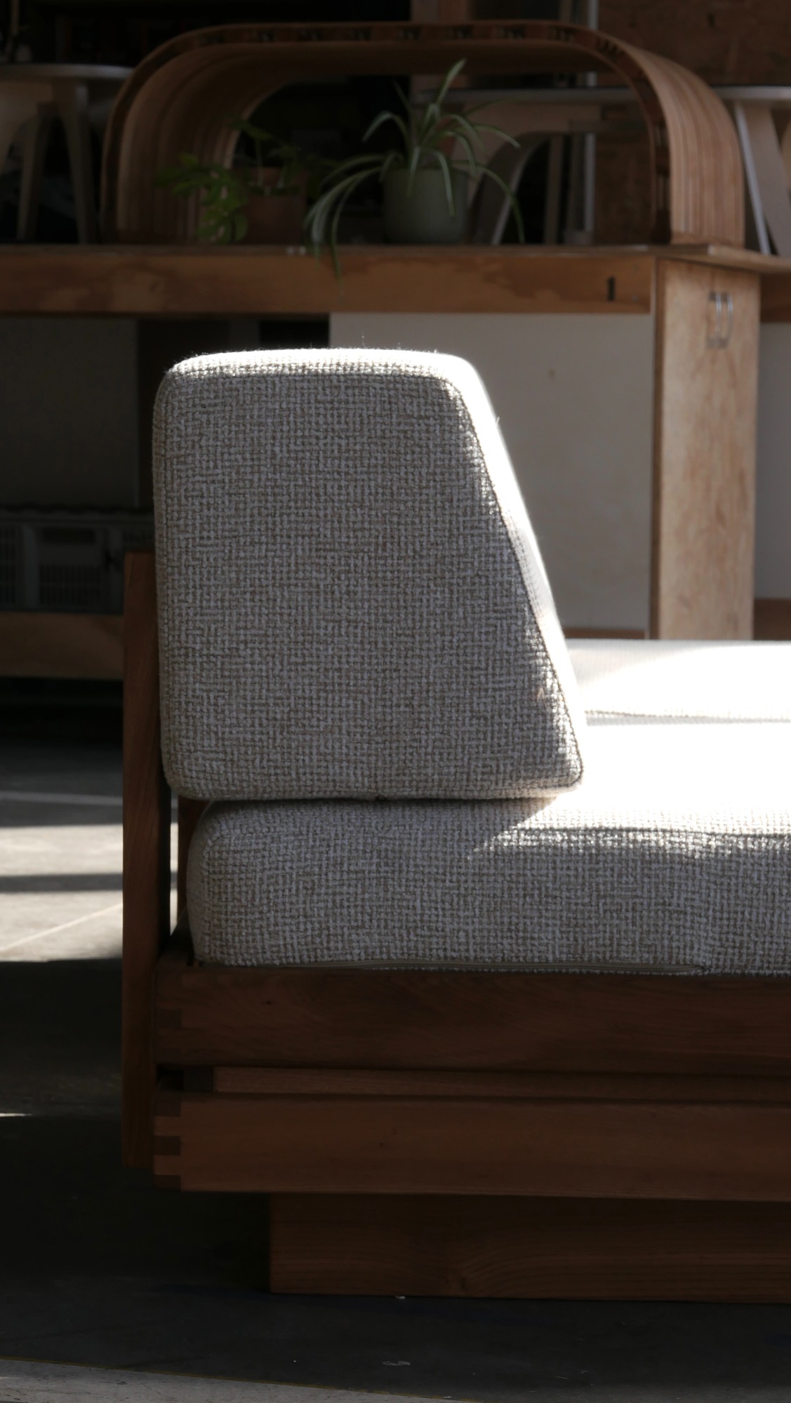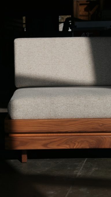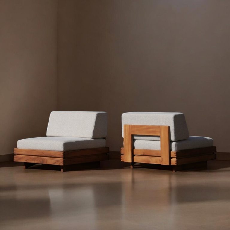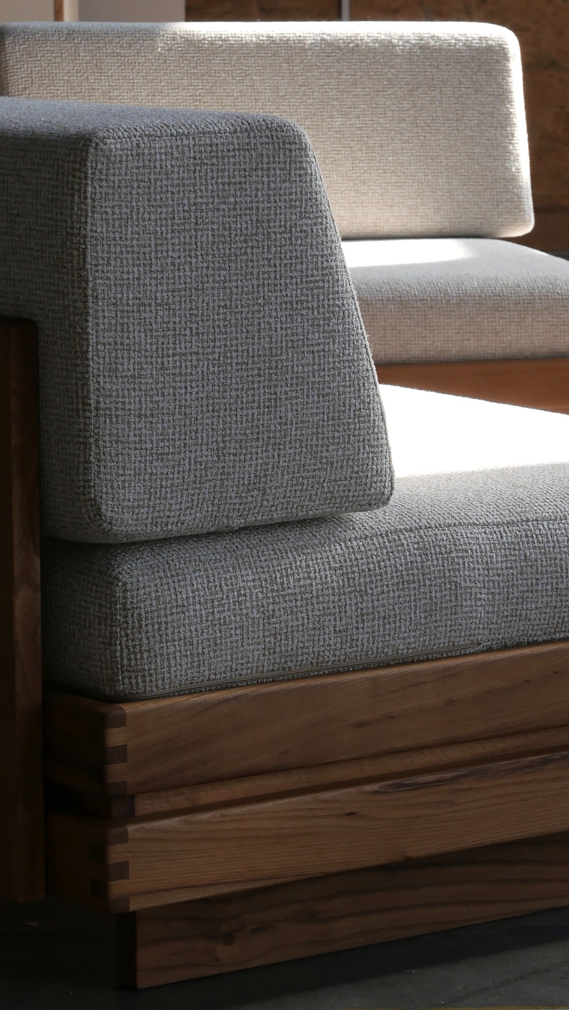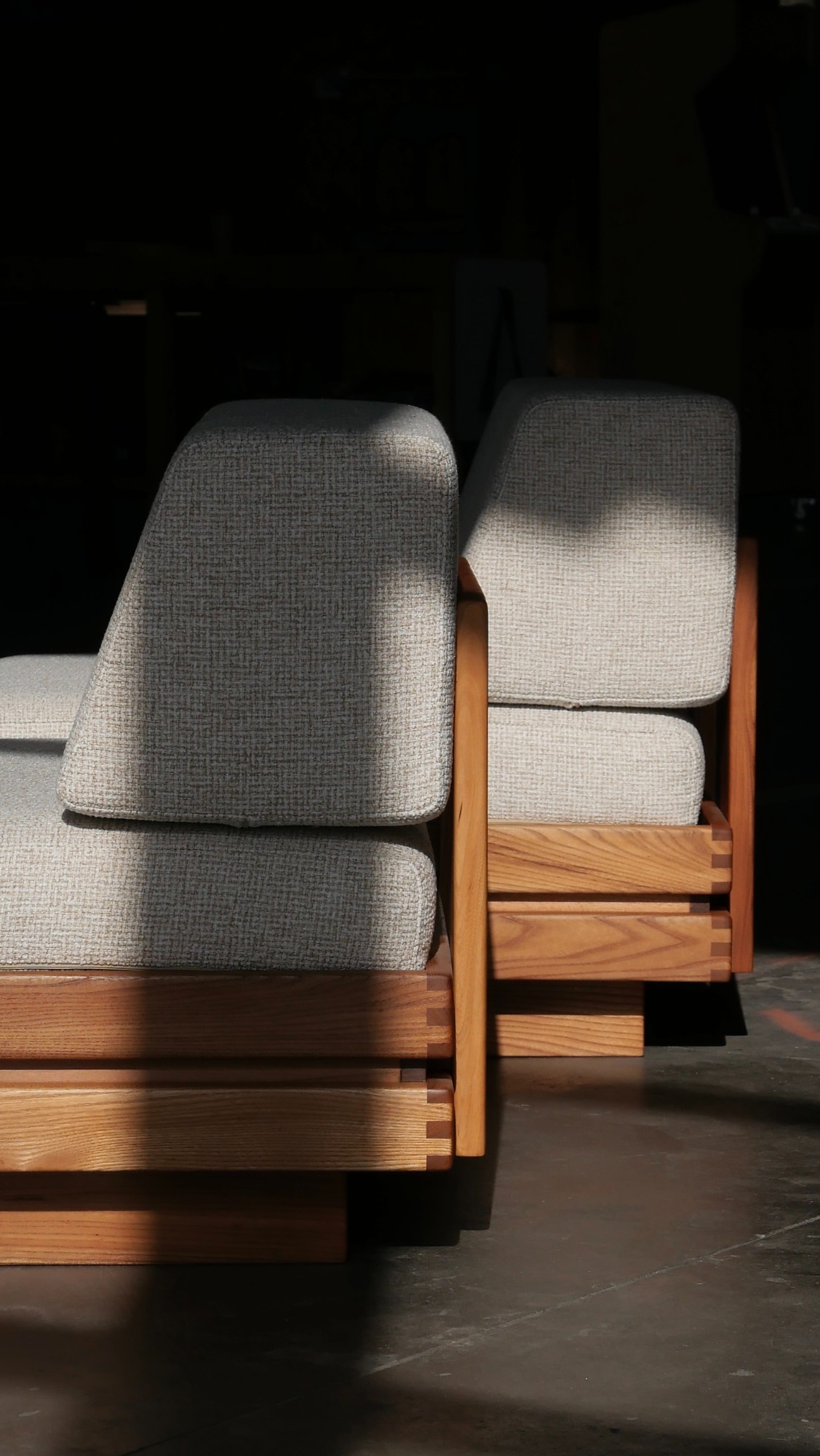 Une ligne basse et structurée, aux proportions justes, évoquant une influence japonisante et une sensation d’assise presque suspendue.