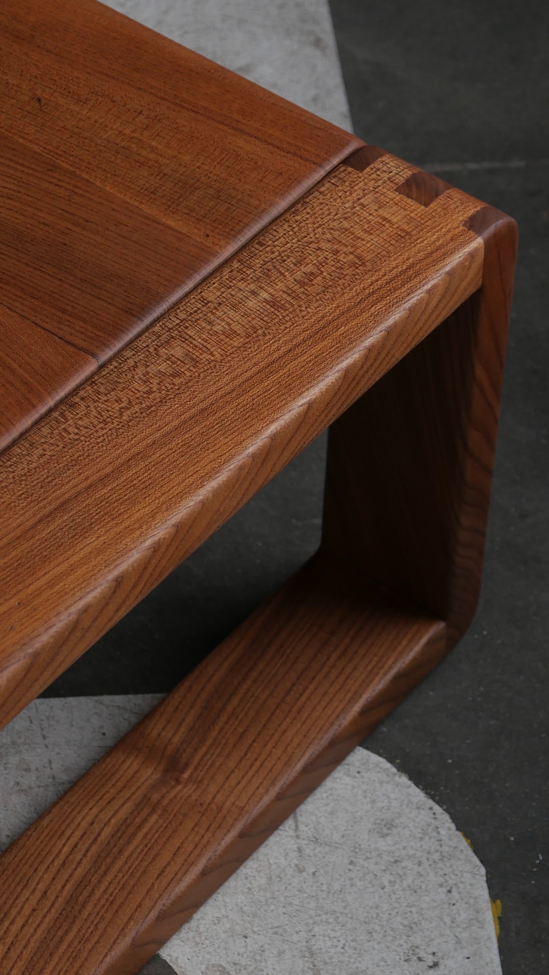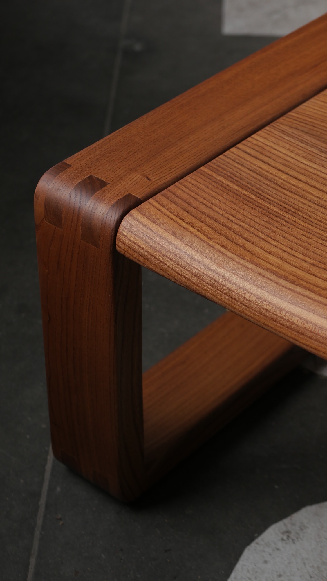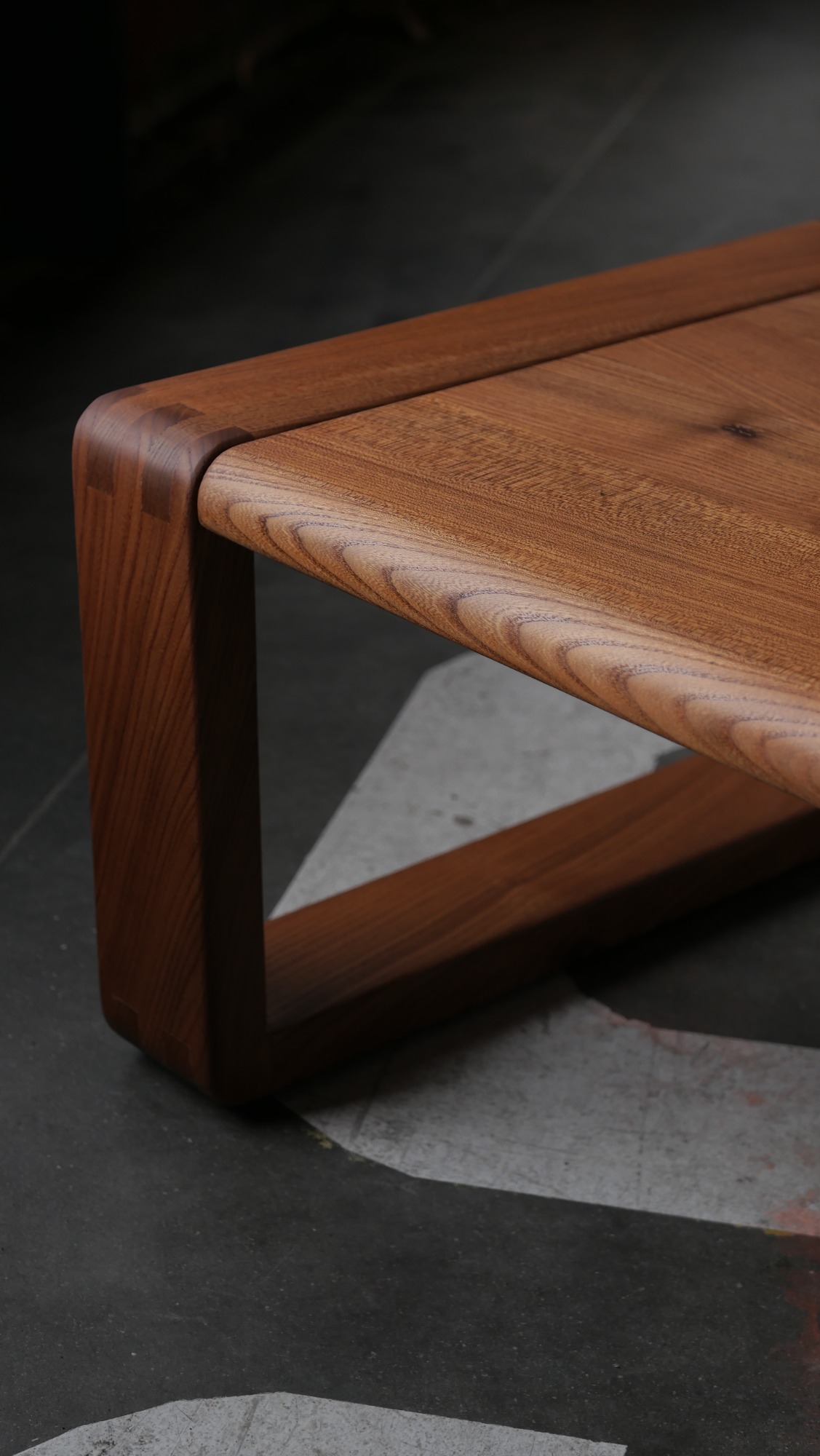 La structure se caractérise par une conception en cadre continu, aux lignes sobres et puissantes, avec des angles adoucis et des assemblages à queue droite parfaitement exécutés.