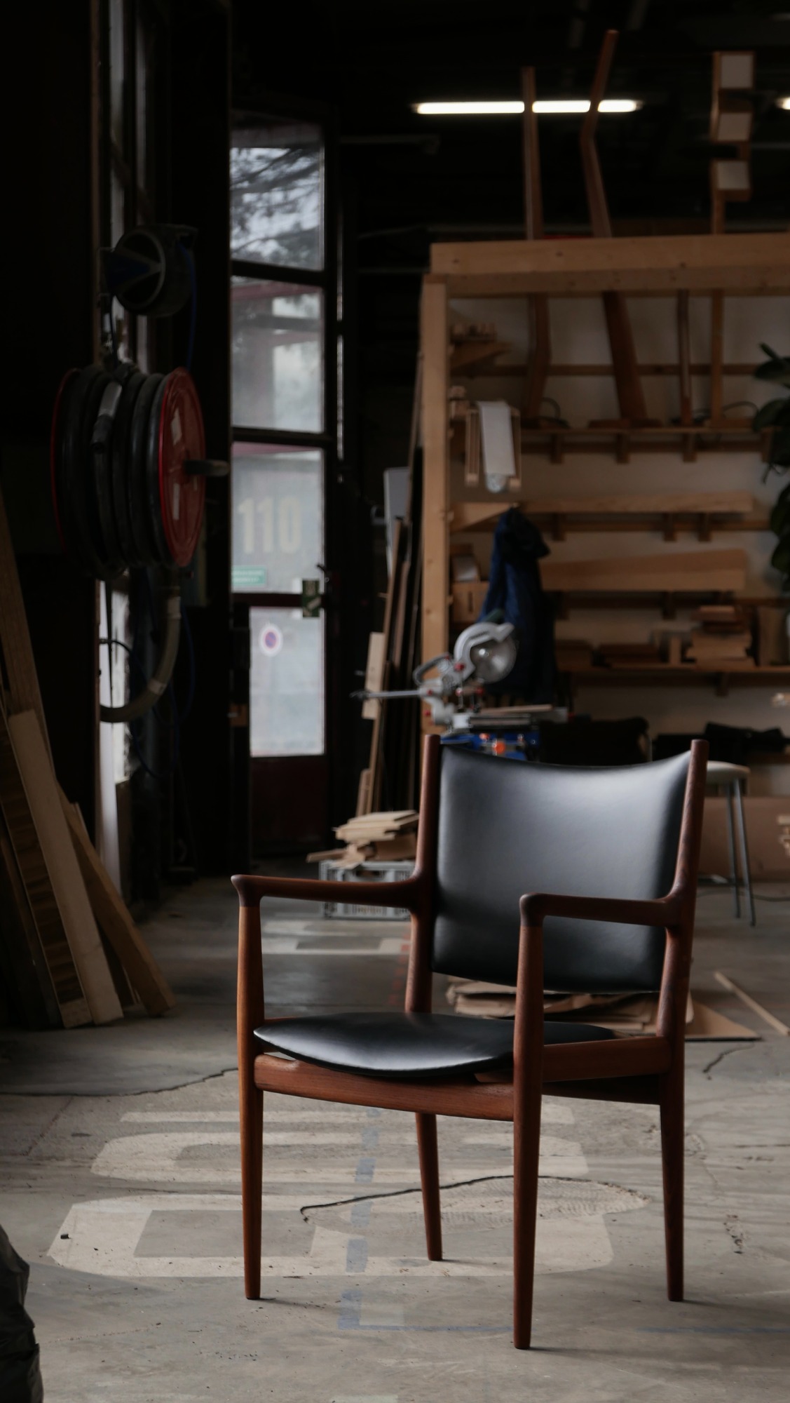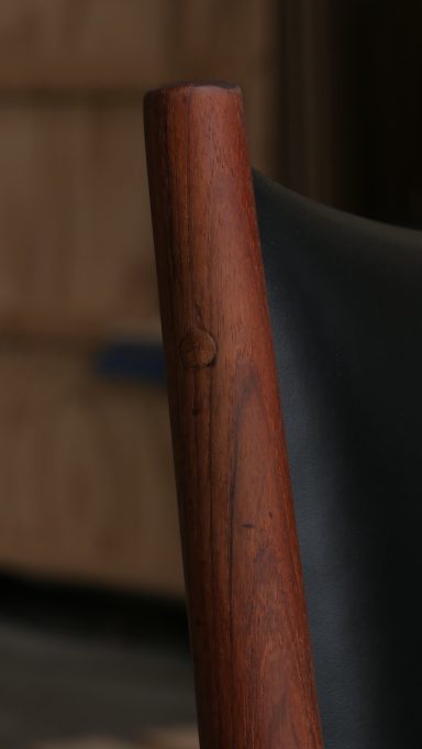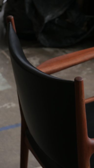 La structure a été complètement poncée et huilée, la mousse et le cuir on été remplacé.