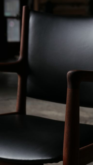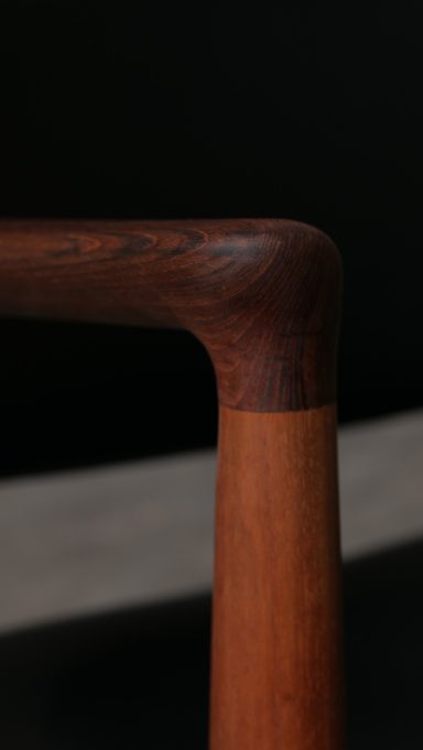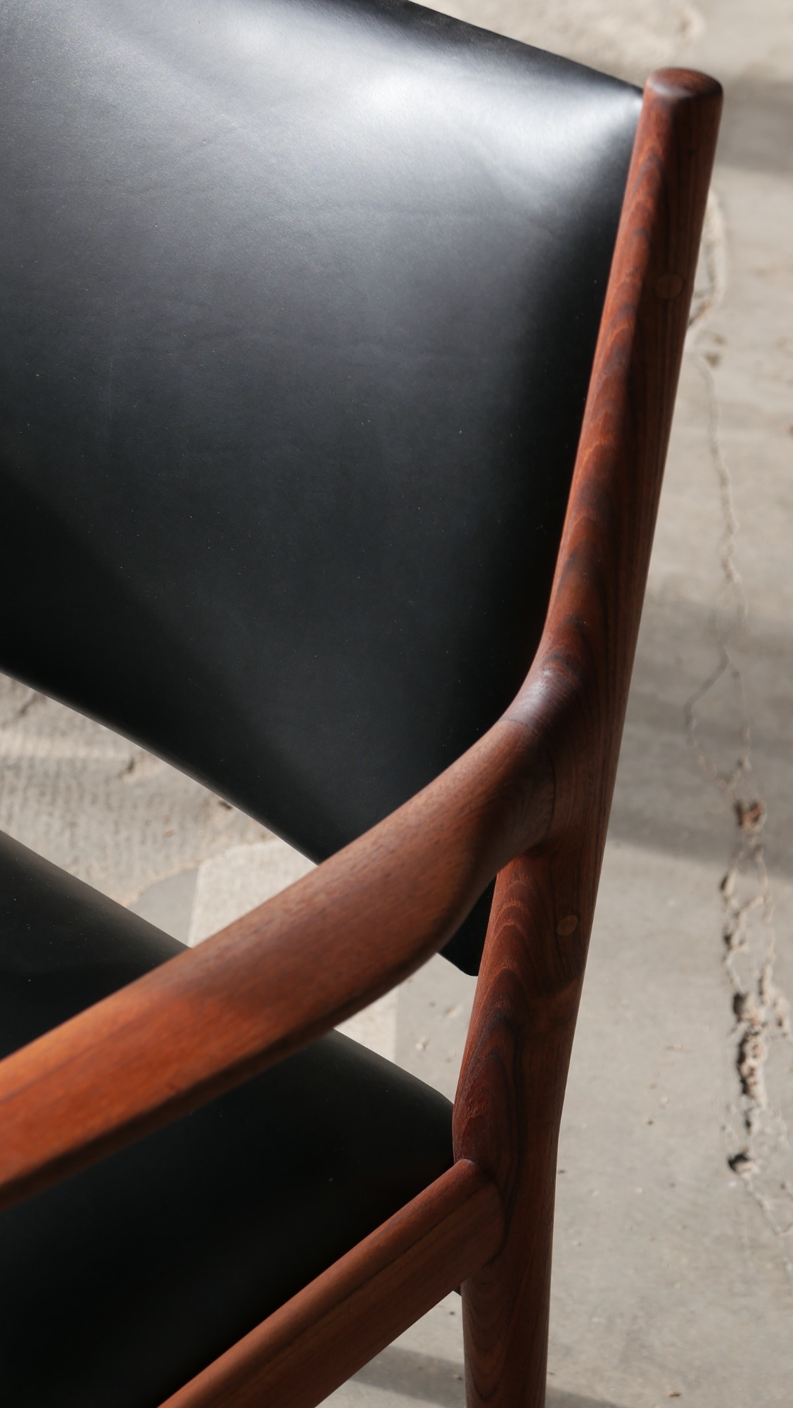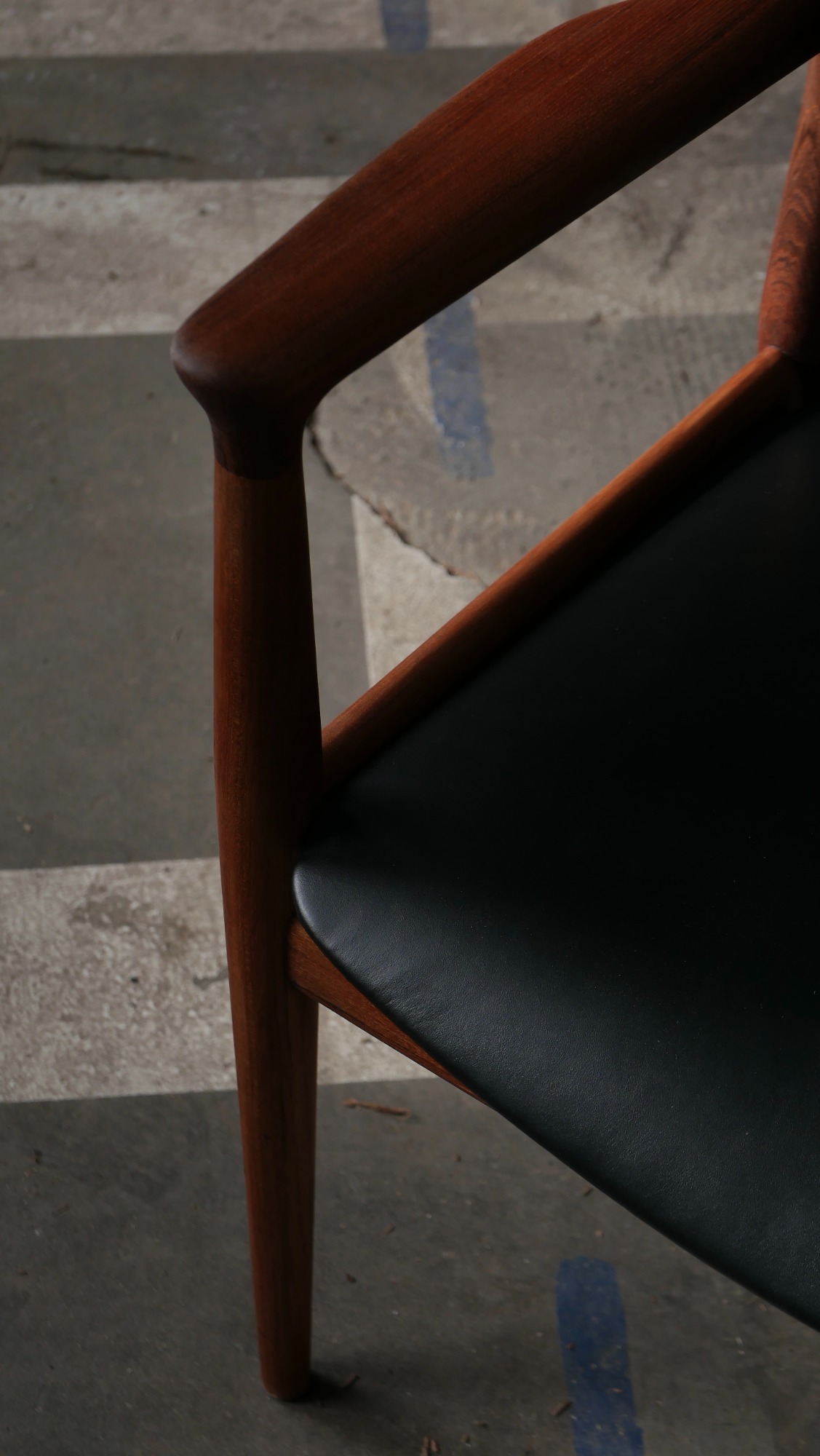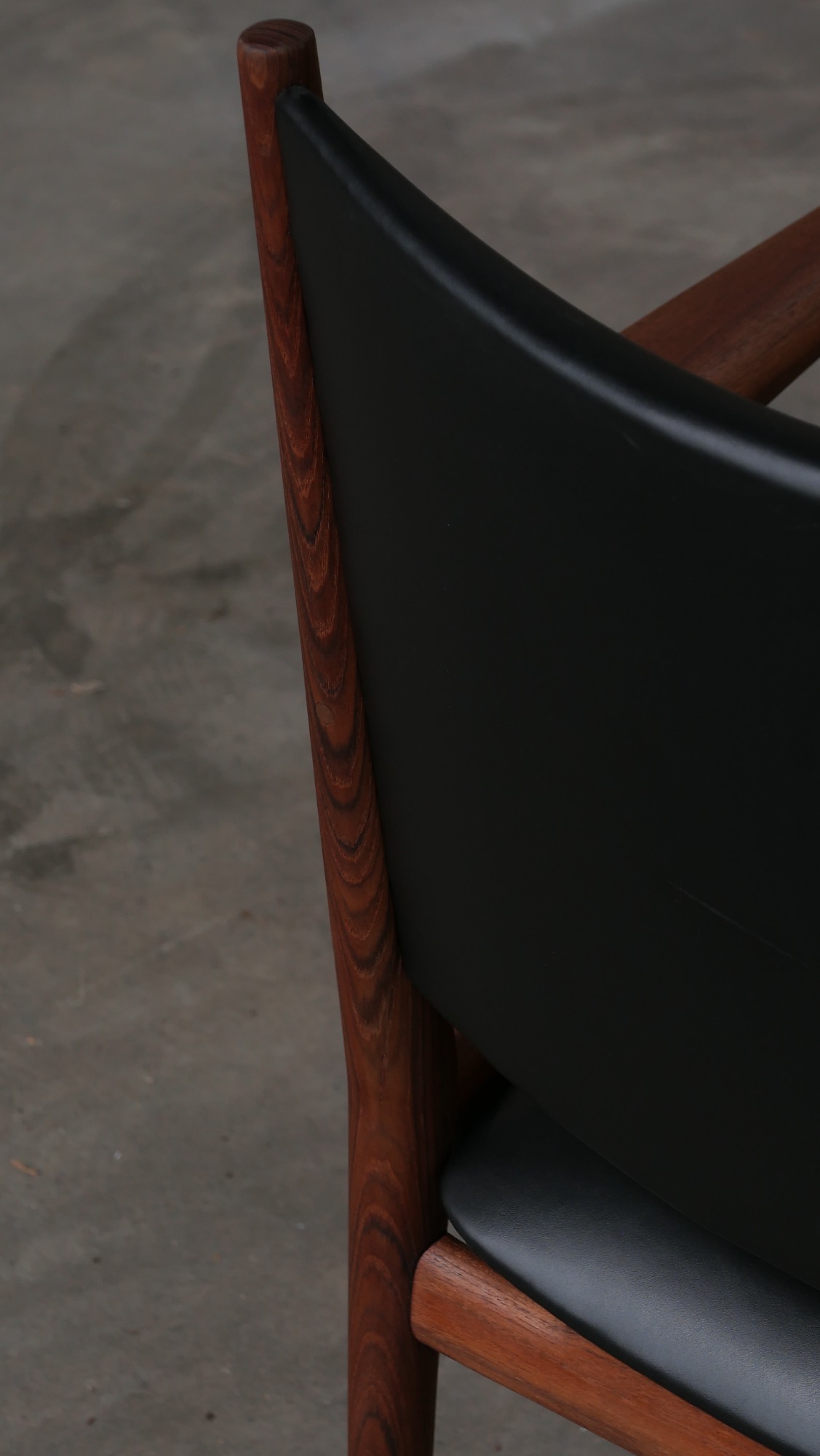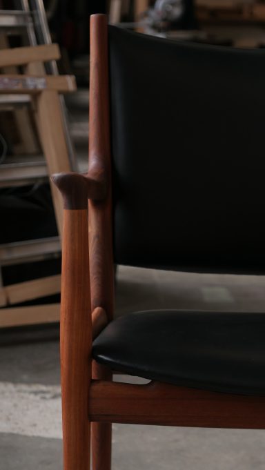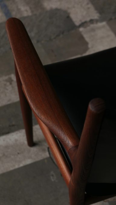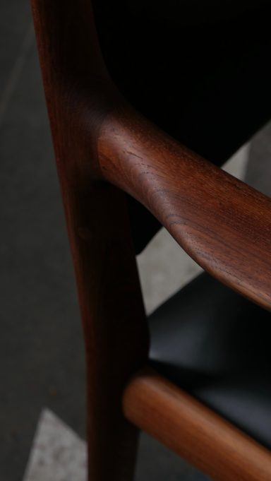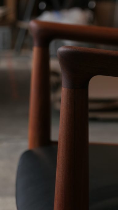 Fauteuil modèle JH513 par Hans Wegner, distribué par Johannes Hansen, en teck et cuir des années 70.