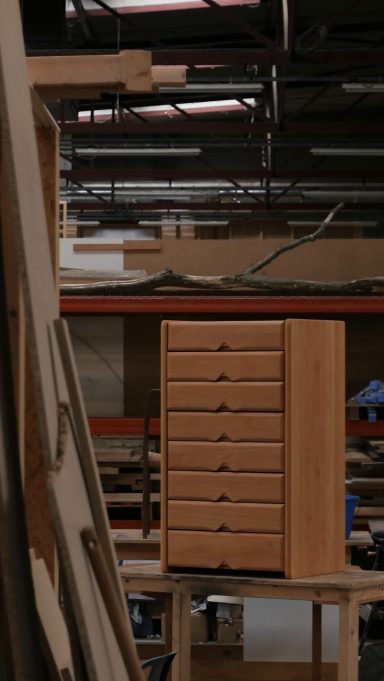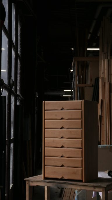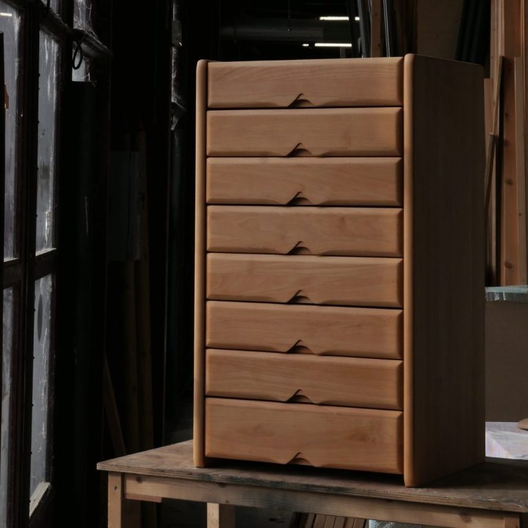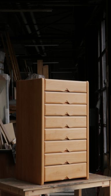 Cette commode haute issue de la série Fagus incarne le savoir-faire de la Maison Seltz, maison d’ébénisterie française reconnue depuis les années 60 pour l’exigence et la qualité de ses fabrications.